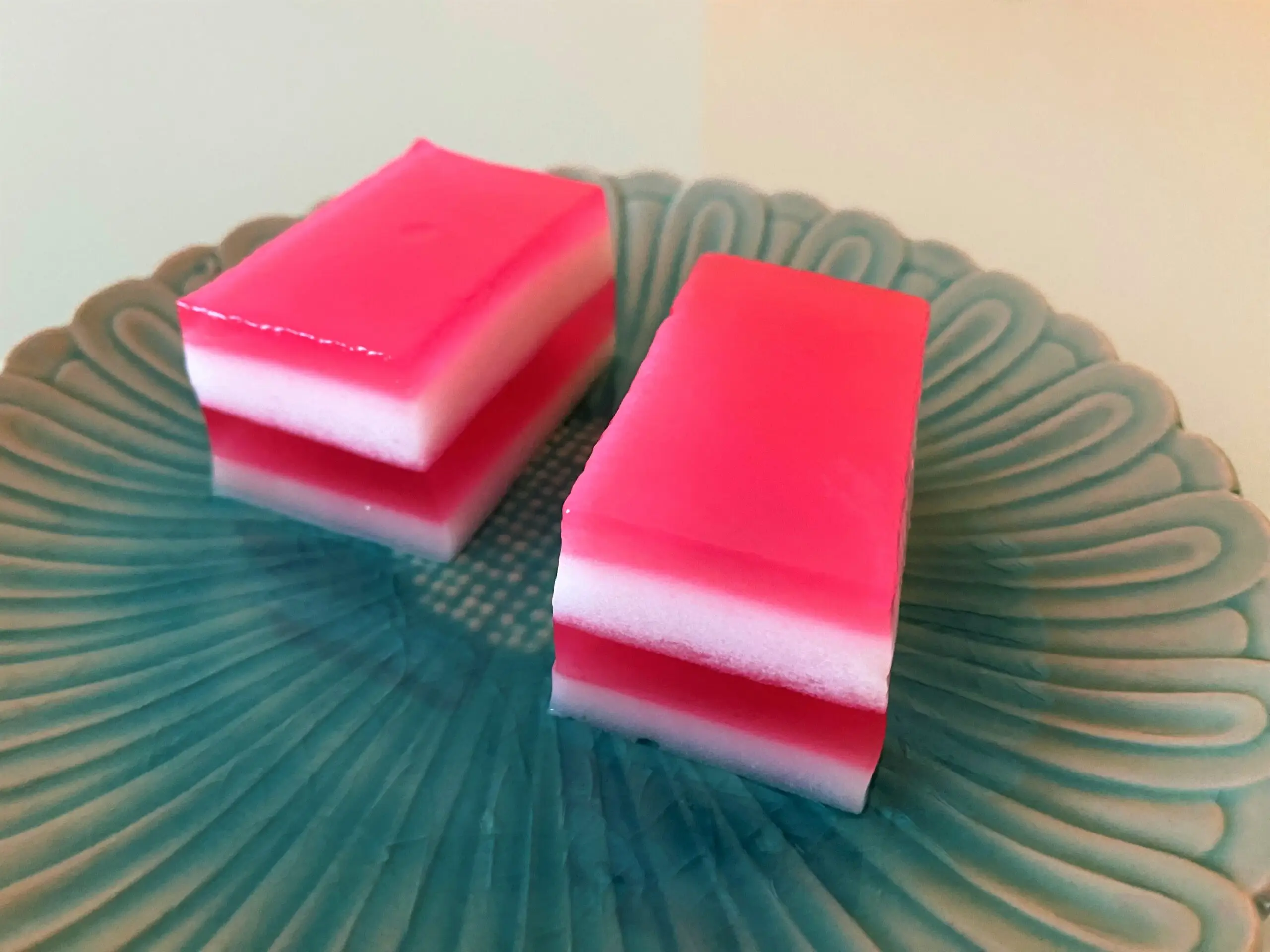 8. When the agar-agar jelly has set, cut into pieces and serve.
