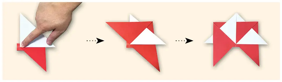 5. For the last triangle, tuck the right half under the first triangle to complete the pattern. You’ll need a piece of double-sided tape to hold the last triangle in place.