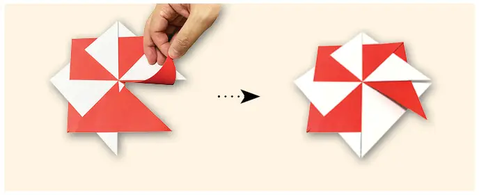 6. Paste a piece of double-sided tape in the middle. Take the outer triangles and fold them inwards to paste on the double-sided tape.