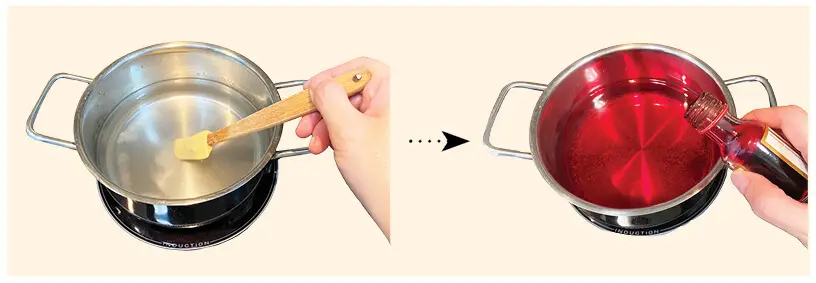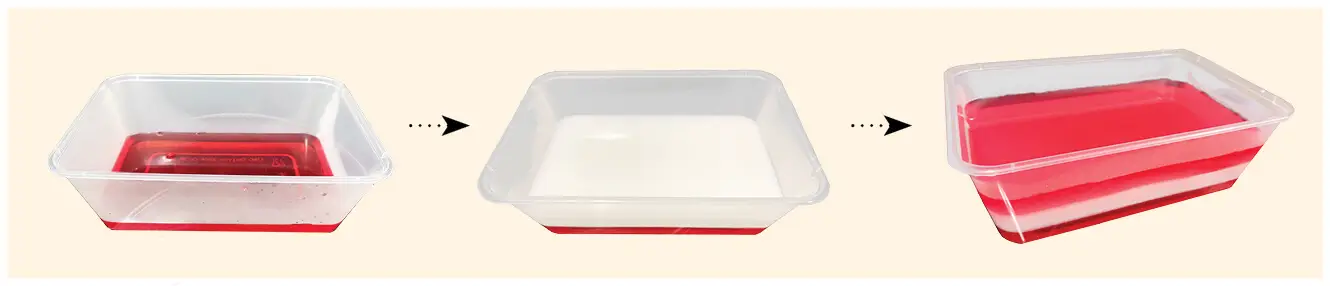 5. Pour the red colouring mixture into a mould and leave to cool.