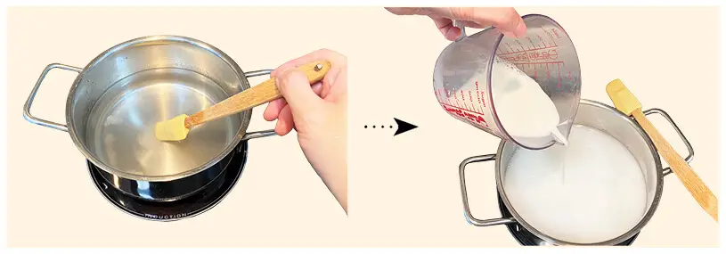 1. Pour water and agar-agar powder into a pot. Follow the instructions on the agar-agar powder packaging to determine how much water to use. Stir and bring to a gentle boil.