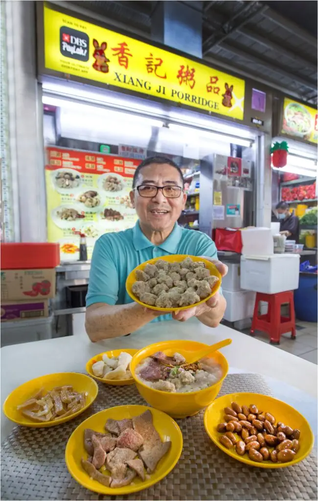 Unlike other porridge stalls that sell Teochew porridge, which has a grainy texture, or Cantonese congee, which is almost like a thick broth, Xiang Ji Porridge sells Hainanese porridge, which is wet and slightly grainy. He said: “We also add dong cai [preserved vegetables] to make the porridge more fragrant.”