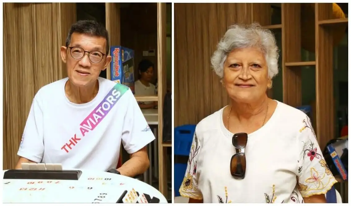 Residents Mr Ronald Tay (left) and Mdm Hyma Vathi (right) enjoy the activities at THK AAC.