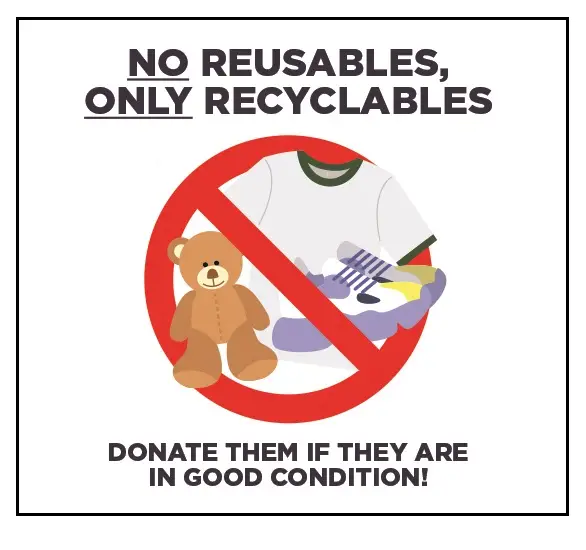 False. These reusables are not recyclables. You can donate them if they are in good condition, otherwise throw them in the trash bin.