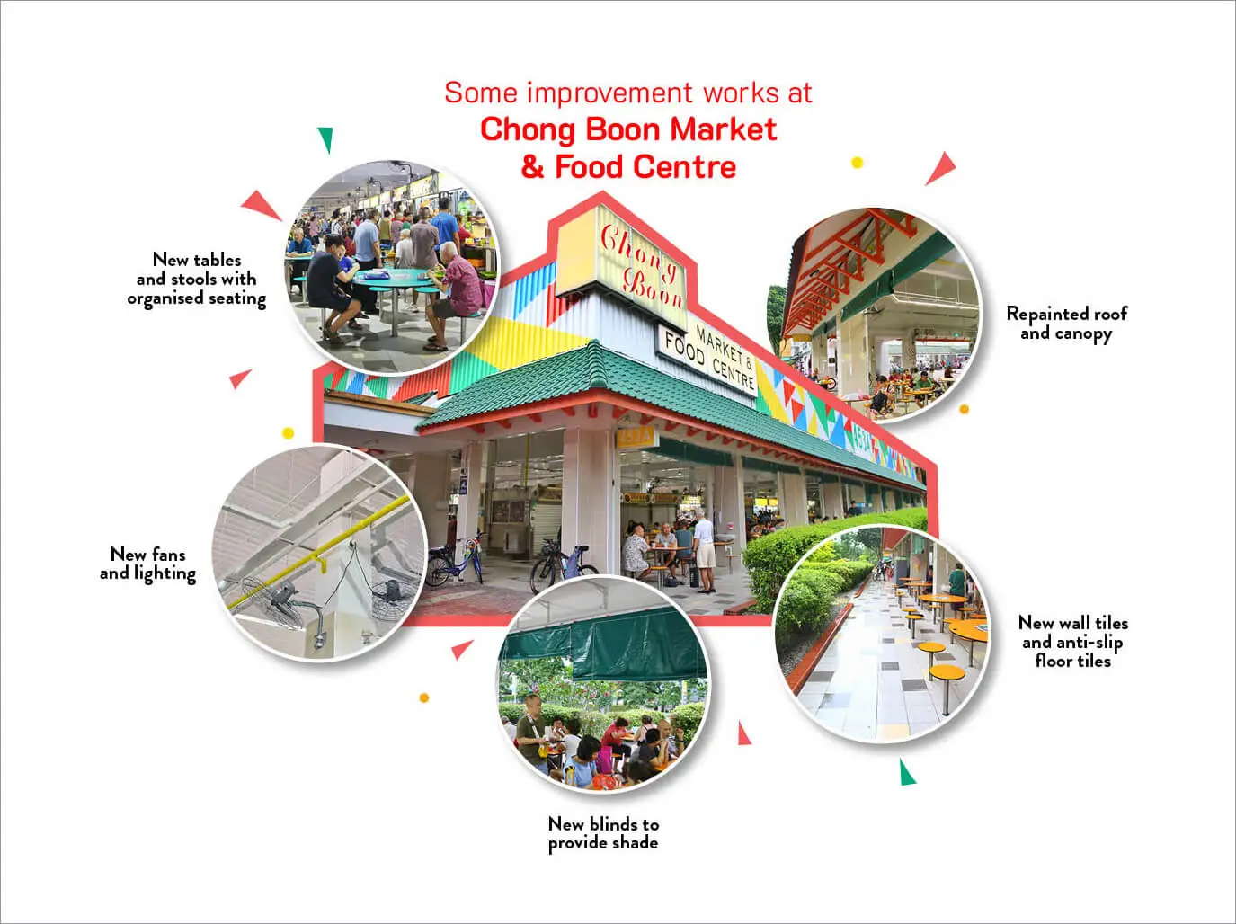 Chong Boon Market & Food Centre and Kebun Baru Market & Food Centre reopened on 1 June 2024 after undergoing extensive Repair and Redecoration works.