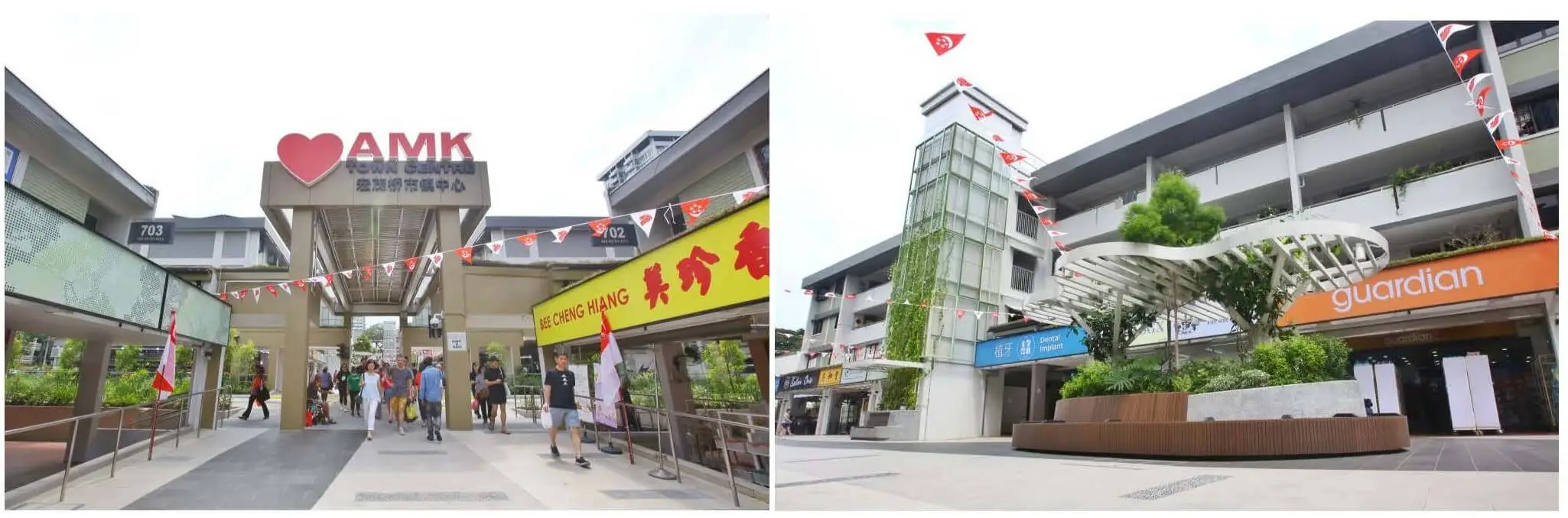 குடியிருப்பாளர்களுக்கு உற்சாகமும் பயன்பாட்டு வசதியும் அளிக்கும் வகையில், கூடுதல் இருக்கைகள், சாய்வுப்பாதைகள், நிழல்தரும் மாடங்கள், நிலவனப்பு ஆகியவற்றுடன் அங் மோ கியோ நகர மையம் சீரமைக்கப்பட்டுள்ளது. சொங் பூன் சந்தை, உணவு நிலையமும் கெபுன் பாரு சந்தை, உணவு நிலையமும் விரிவான பழுதுபார்ப்பு, மறுஅலங்கரிப்புப் பணிகளுக்குப் பிறகு மீண்டும் திறந்துள்ளன.