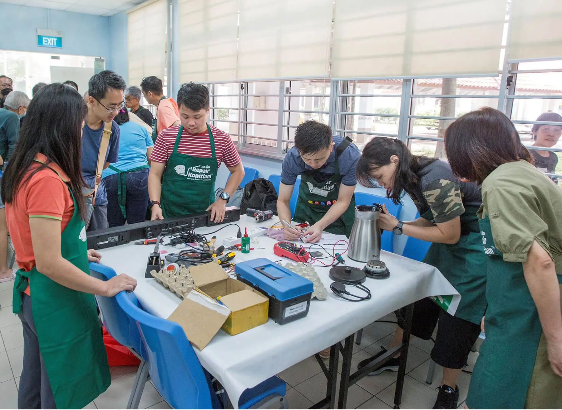 “ரிப்பேர் கோப்பிதியாம்” சமூக முனைப்பின்கீழ், குடியிருப்பாளர்கள் பழுதடைந்த தங்கள் பொருட்களை, பழுதுபார்ப்பு பயிற்றுவிப்பாளர்களின் வழிகாட்டுதலுடன் பழுதுபார்க்கக் கற்றுக்கொள்ளலாம். பொருட்களின் விரயத்தைக் குறைத்து, நீடித்த நிலைத்தன்மையை வளர்ப்பது இந்த முனைப்பின் நோக்கம். ஒவ்வொரு மாதமும் கடைசி ஞாயிற்றுக்கிழமையன்று, அங் மோ கியோ அவென்யூ 1, புளோக் 309Bல் பயிலரங்கு நடைபெறும். குடியிருப்பாளர்கள் இணையம்வழி பதிவு செய்து, பழுதடைந்த இரண்டு பொருட்கள் வரை பயிலரங்குக்கு எடுத்துச் செல்லலாம்.