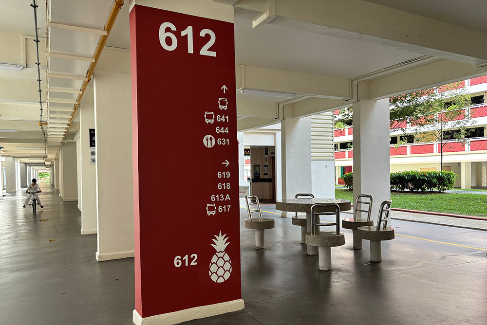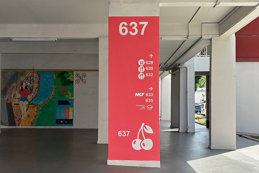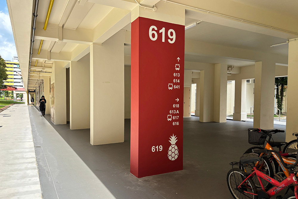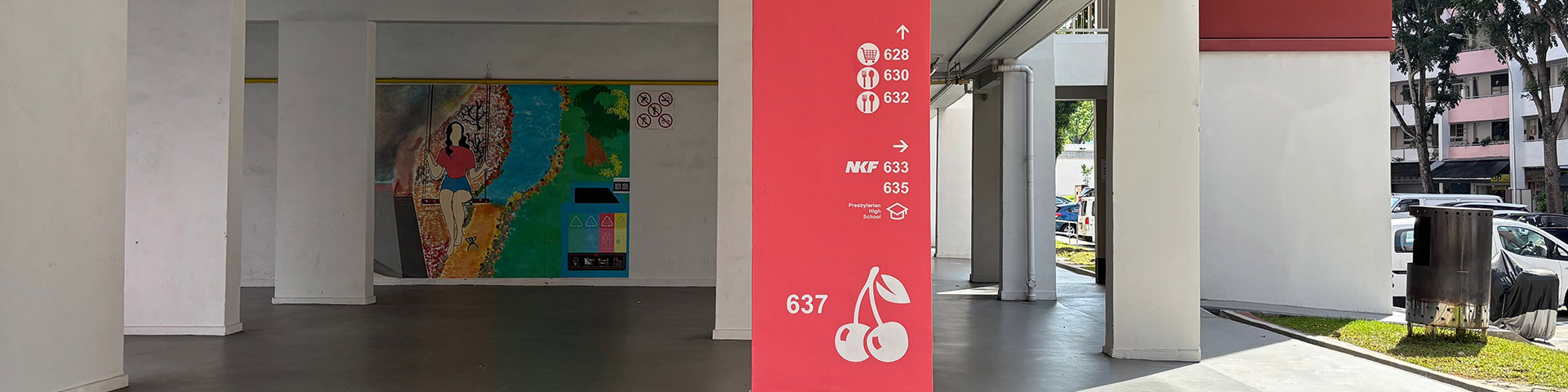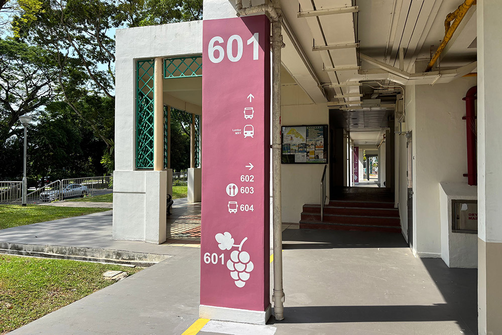 Introduced across all residential blocks as part of Ang Mo Kio Town Council’s efforts to build a more dementia-friendly and accessible neighbourhood, these murals are painted on pillars at the void decks, pointing the way to nearby MRT stations, schools, and neighbouring blocks.